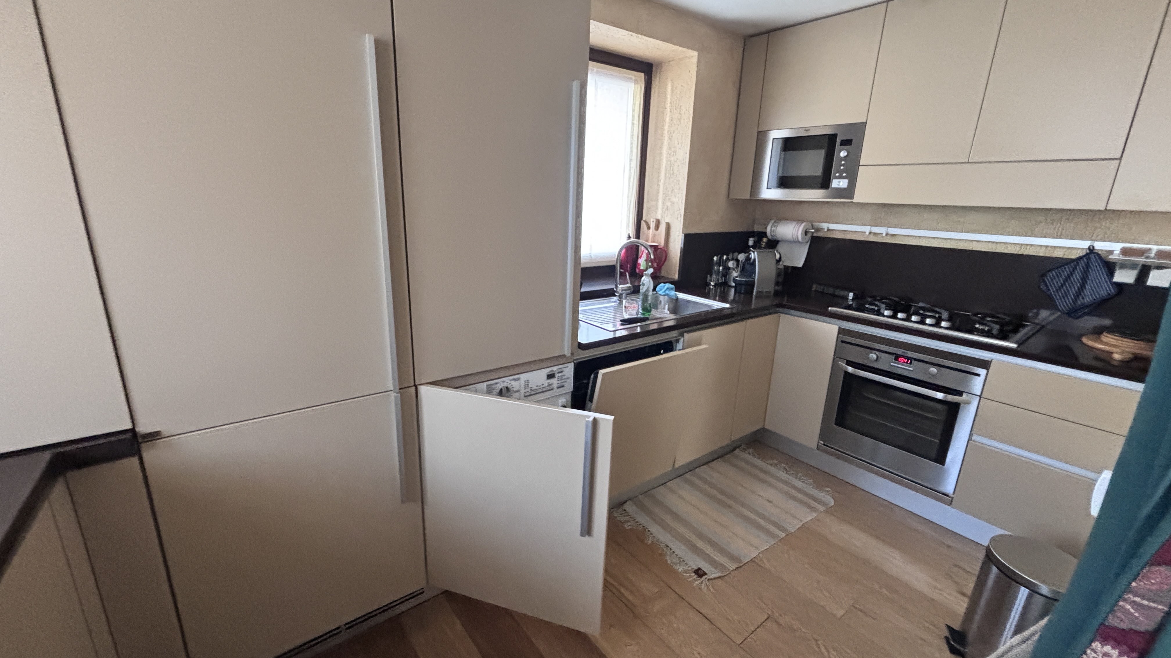 L’abitazione si distingue per gli ampi spazi e la distribuzione elegante: luminoso soggiorno con cucina, camera di servizio con bagno, camera/studio con bagno e raffinato soppalco.
